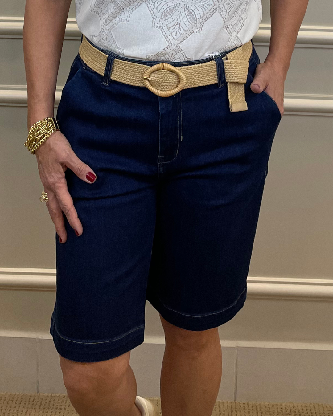 Essa bermuda jeans em tom azul marinho é uma proposta leve e feminina, perfeita para composições casuais e elegantes. Confeccionado em tecido de toque macio e estrutura firme, possui modelagem reta, bolsos frontais funcionais e passantes para cinto, garantindo praticidade e um caimento impecável. O tom suave adiciona delicadeza ao visual, sendo ideal para imitações de peças neutras ou estampadas, valorizando o look de verão com charme e sofisticação.