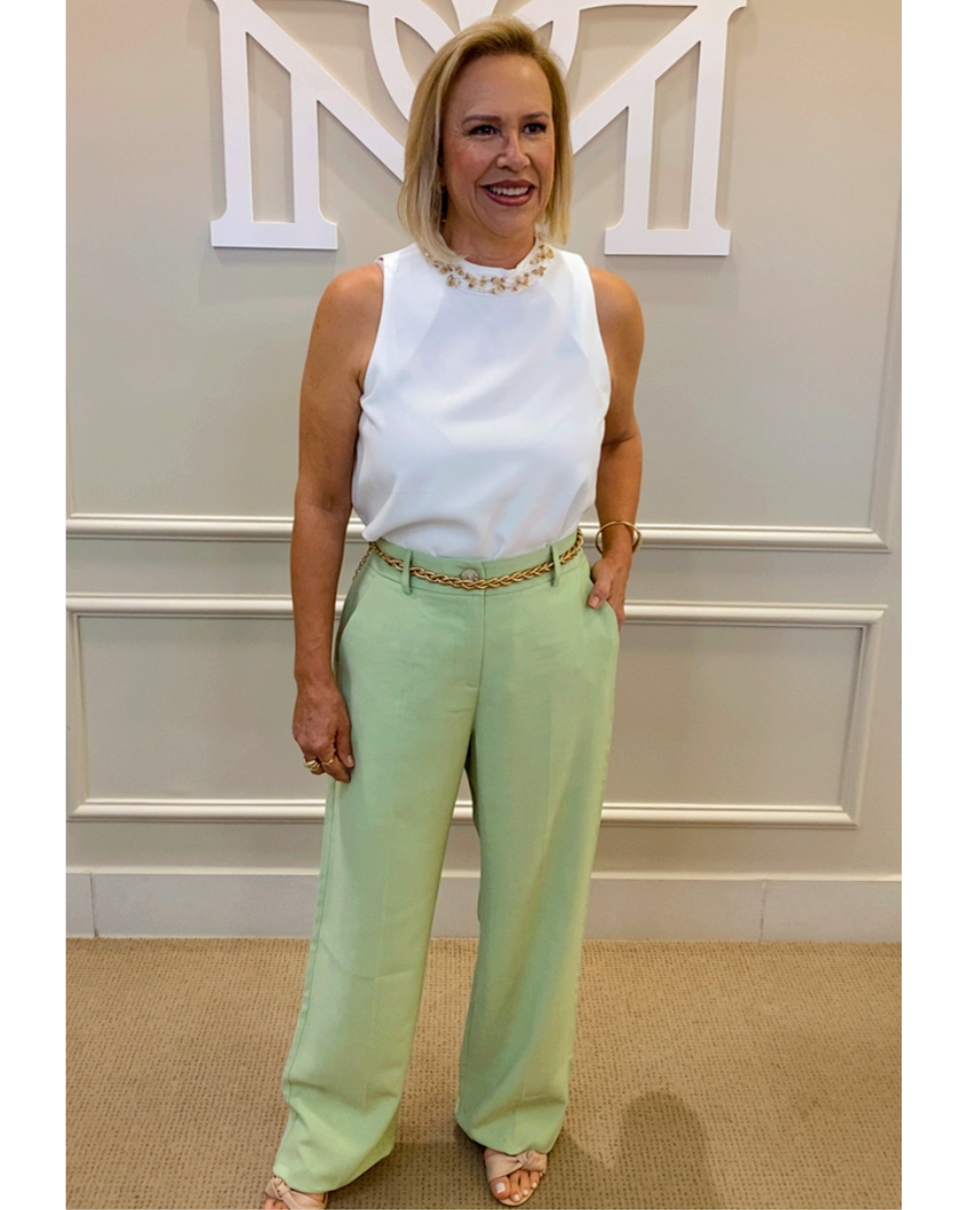 Calça reta alfaiataria pistache bolso botão - Seiki