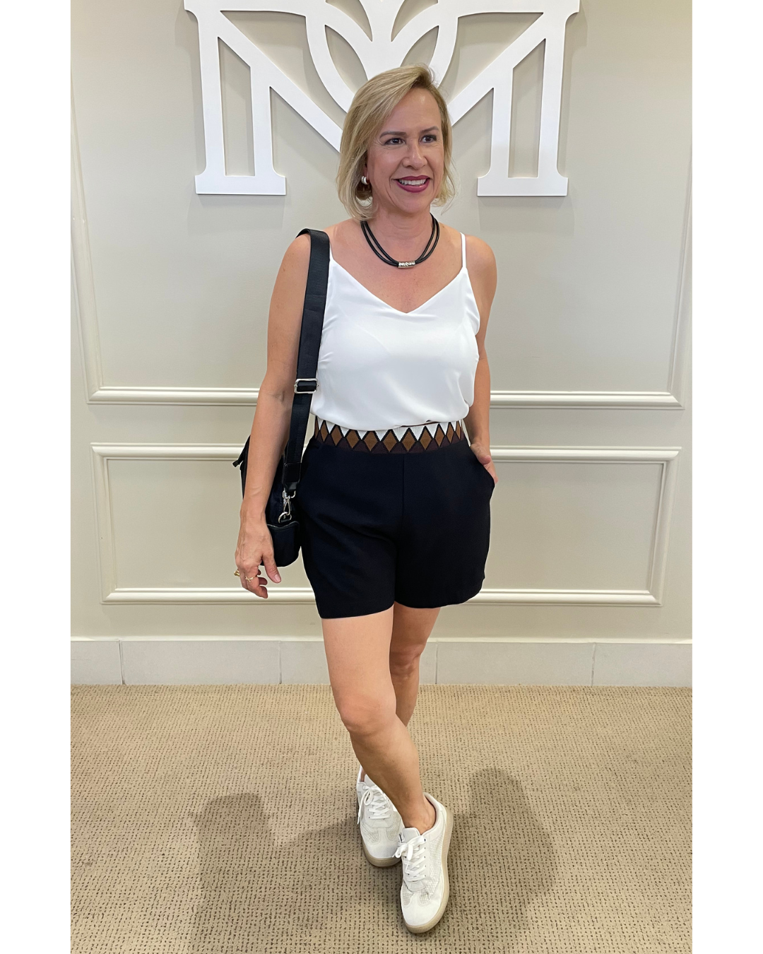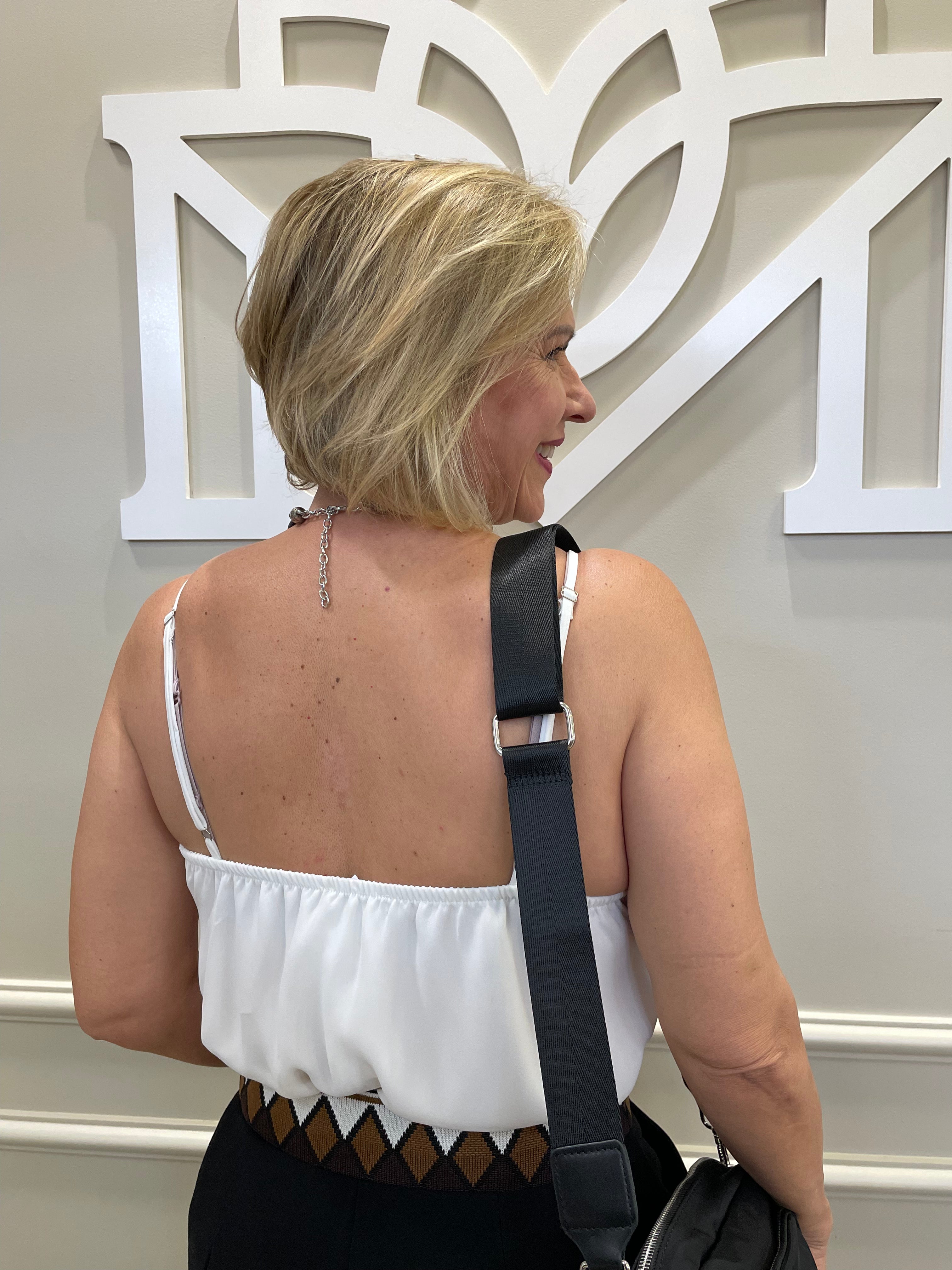 A regata da imagem é confeccionada em tecido leve e fluido, com caimento solto e elegante. Possui alças finas e decote em “V”, que valoriza o colo de forma delicada. A peça é de cor branca, transmitindo um visual clean e sofisticado. É uma regata versátil, ideal para composições tanto casuais quanto mais arrumadas, dependendo dos acessórios e da parte de baixo escolhida.