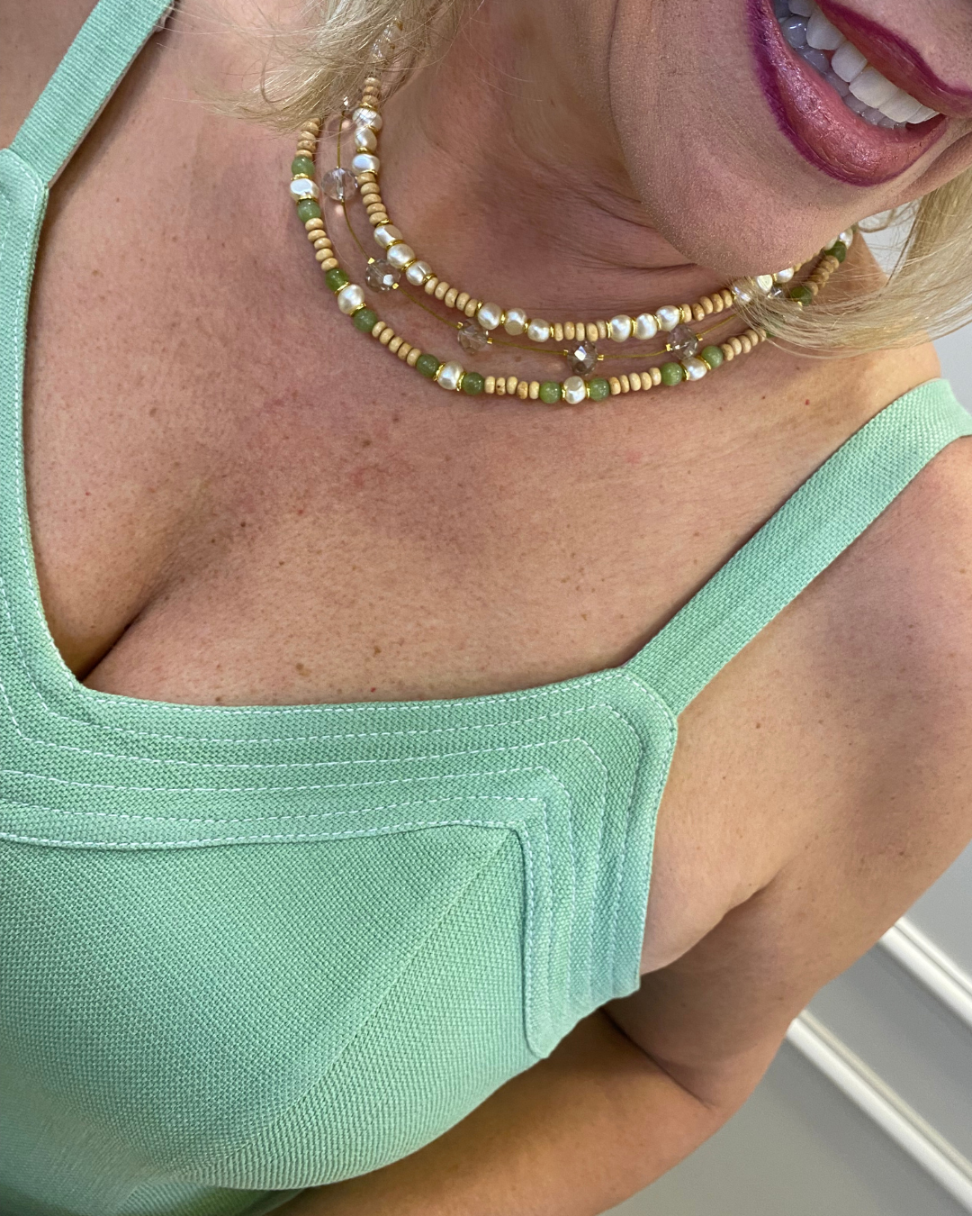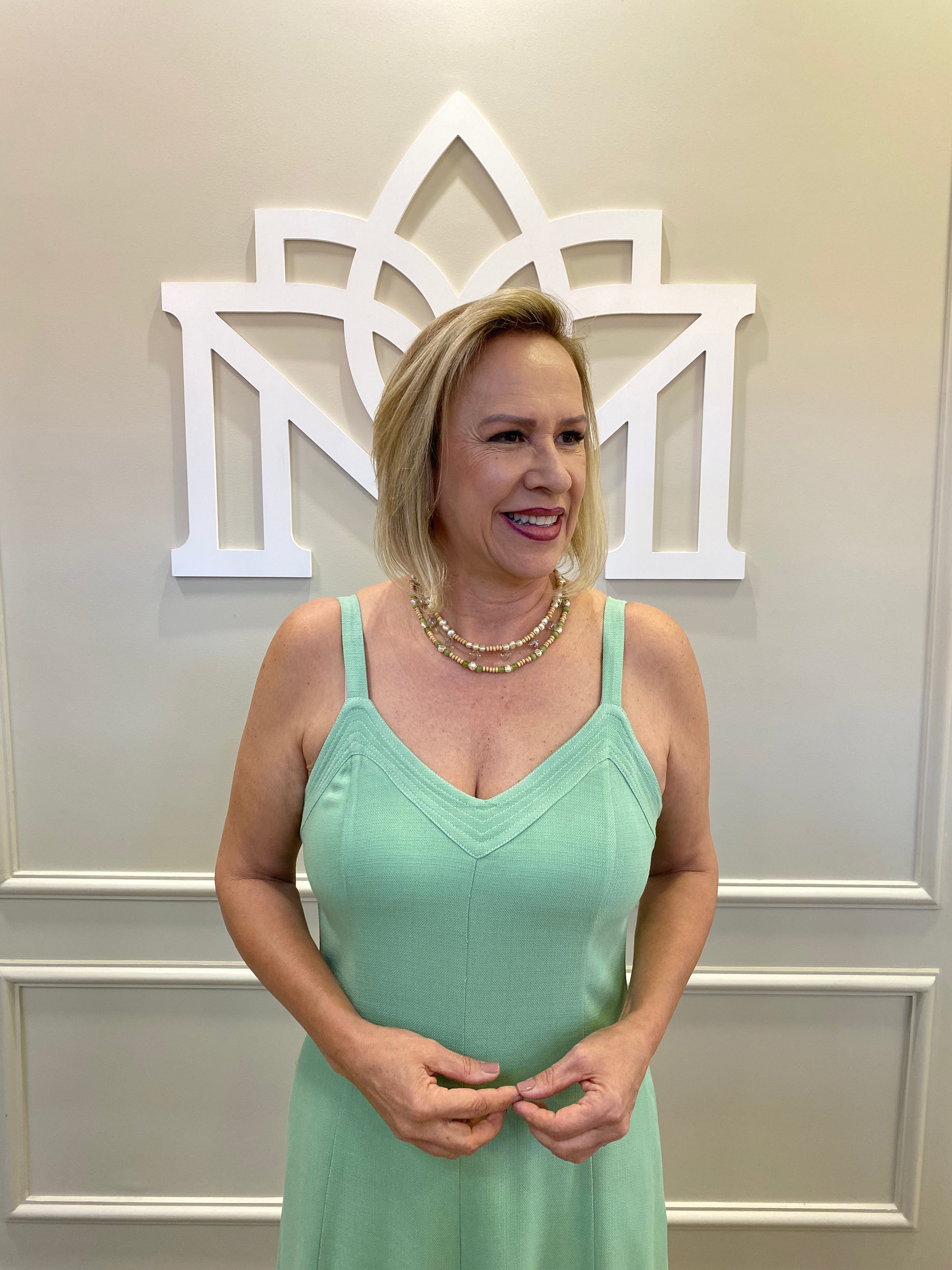 Esse vestido é um modelo longo em tom verde claro, confeccionado em tecido leve e com ótimo caimento. Ele possui alças finas duplas, com detalhe de sobreposição no busto que valoriza o colo. O decote é em “V” profundo, trazendo um toque elegante e feminino. A modelagem é solta e fluida, garantindo movimento e conforto, ideal para ocasiões casuais ou eventos ao ar livre.