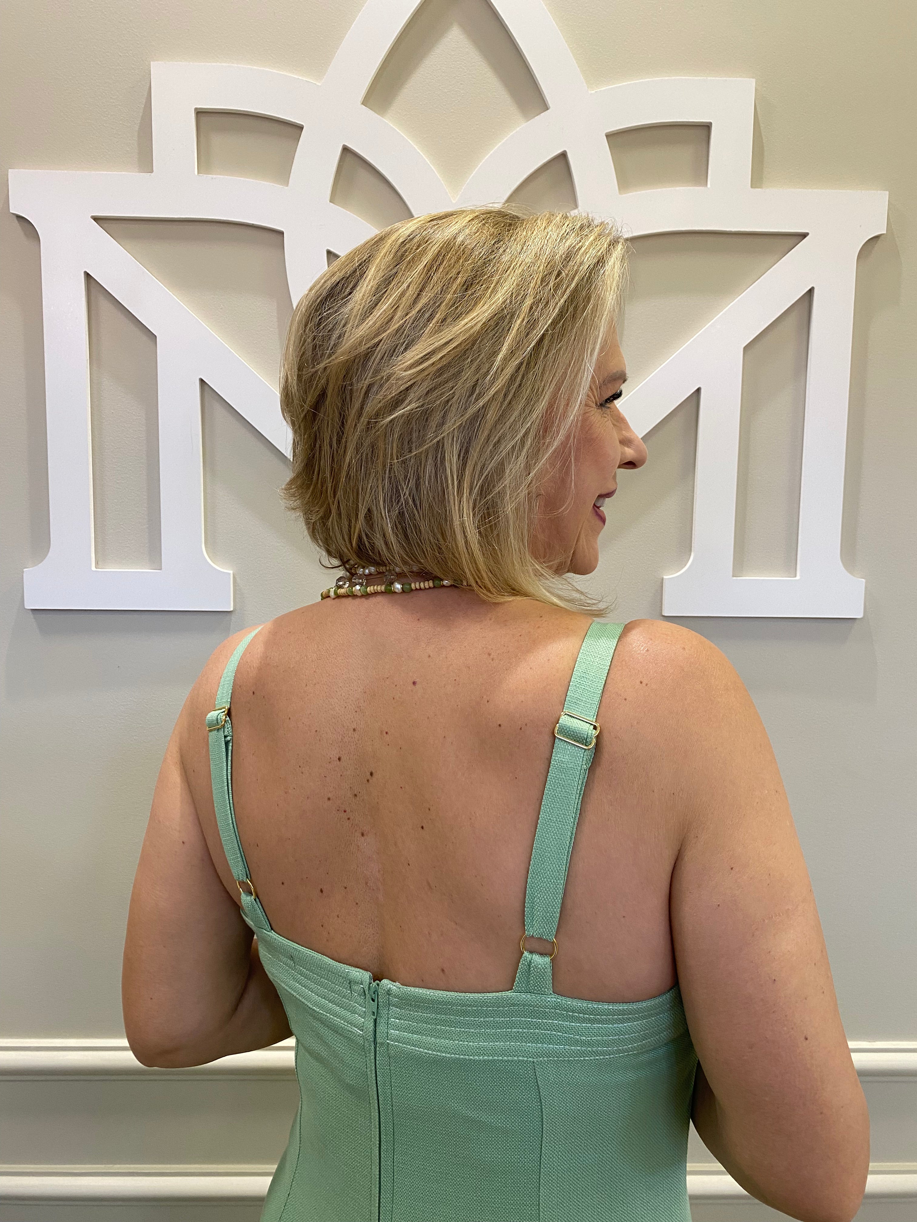 Vestido midi pistache decote pesponto - Seiki